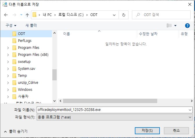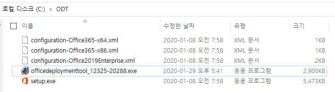- 다운로드후 압축 해제(C:\ODT 폴더 생성)