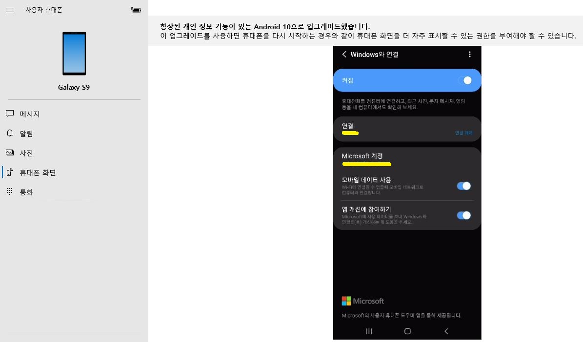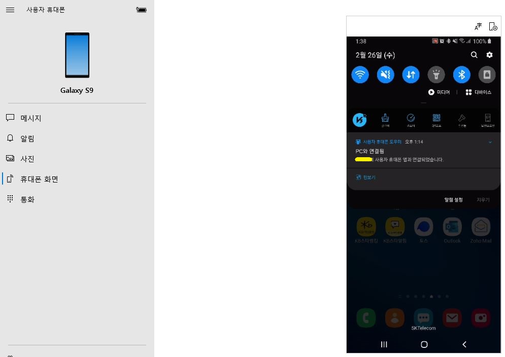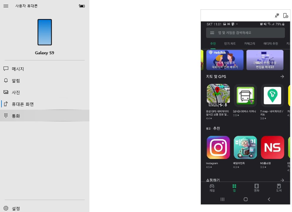 6. PC에서 "휴대폰 화면" 확인하기(휴대폰 제어 가능, APP 실행 등)