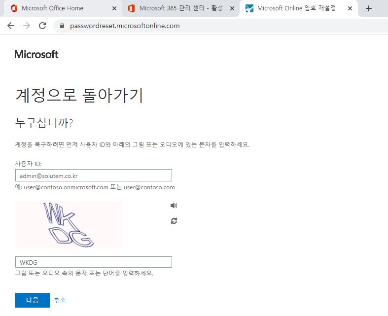 Microsoft Online 암호 재설정