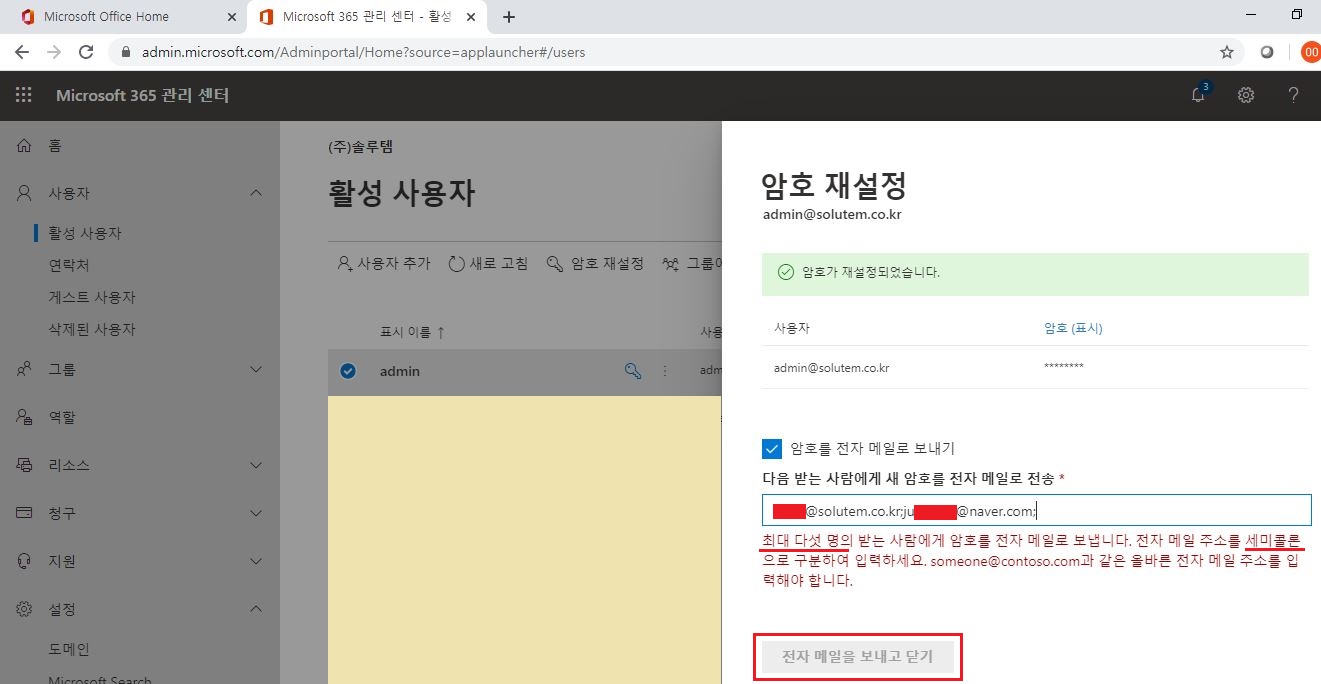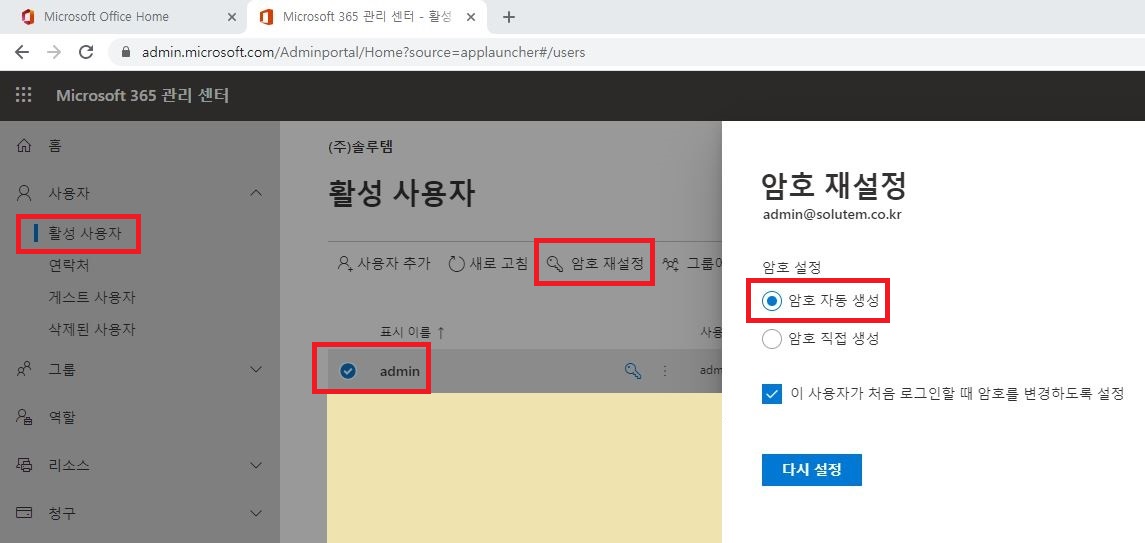 1. 관리자가 사용자의 암호를 재설정하는 경우(암호 자동 생성)