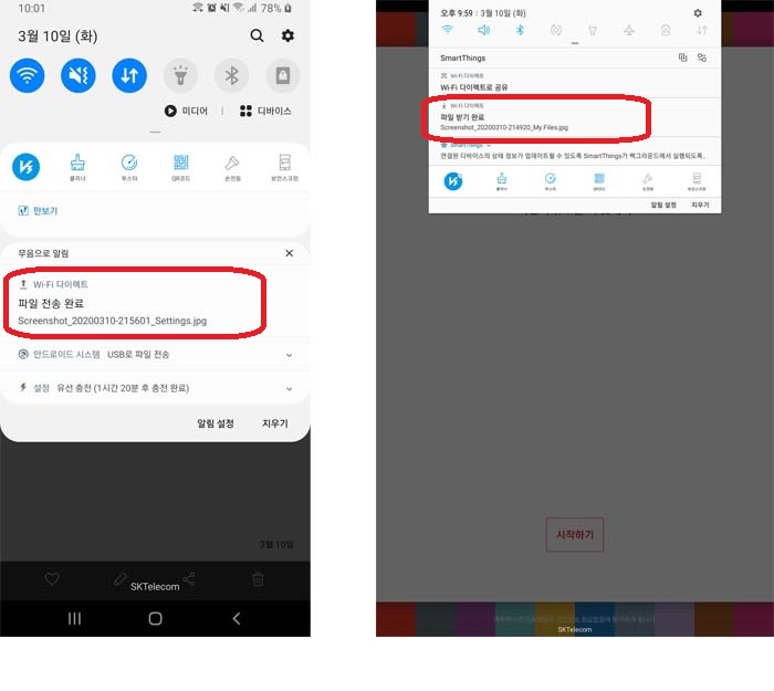 8. 휴대폰에서는 "파일 전송 완료" 알림이 표시되고