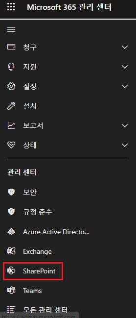 2. 왼쪽의 메뉴중 "SharePoint" 클릭