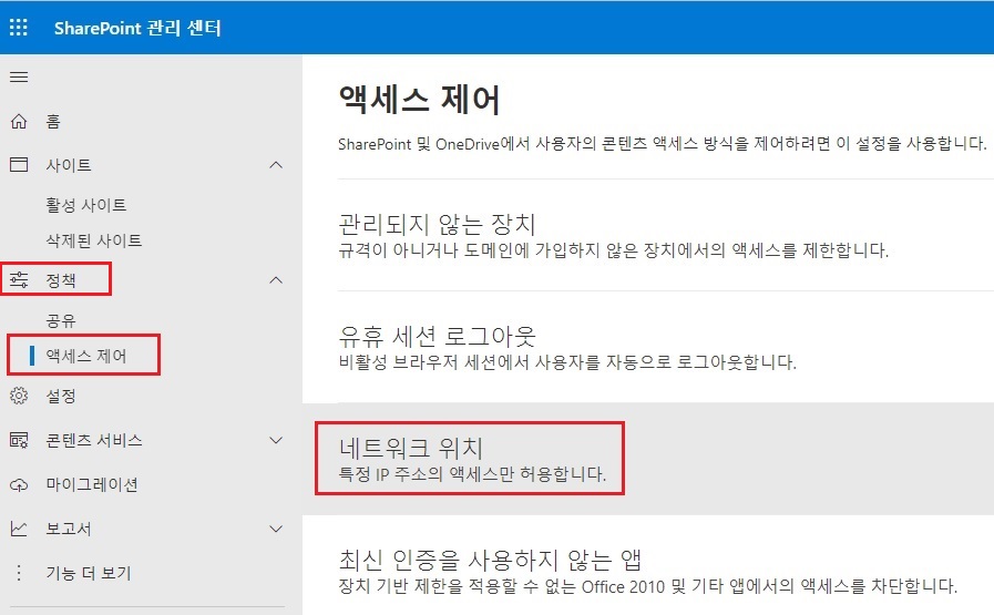 5. Microsoft 홈페이지 설명 보기 : https://docs.microsoft.com/ko-kr/sharepoint/control-access-based-on-network-location
