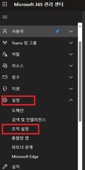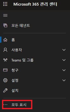 1. Microsoft 365 관리자로 로그인하여 관리센터에 접속 => 왼쪽 메뉴 하단의 "모두 표시" 클릭