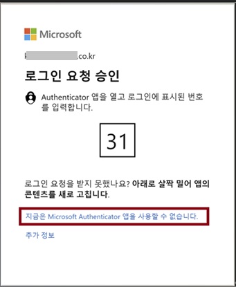 | * Authenticator 사용을 못할 경우, 하단 클릭 | * 다른 인증수단(로그인 메서드) 추가 등록한 경우 |