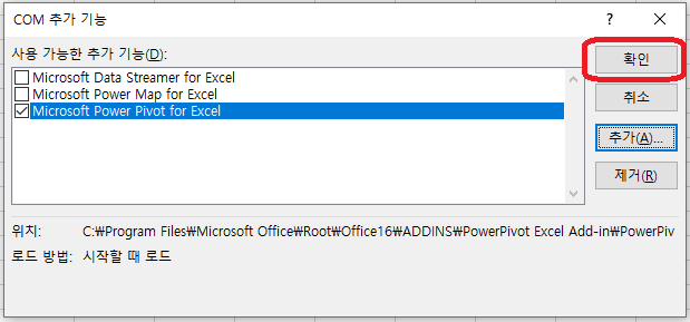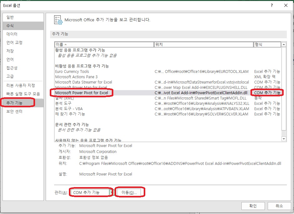 Microsoft Excel 추가 기능 Power Pivot(파워피봇) 설치하기 - 솔루템
