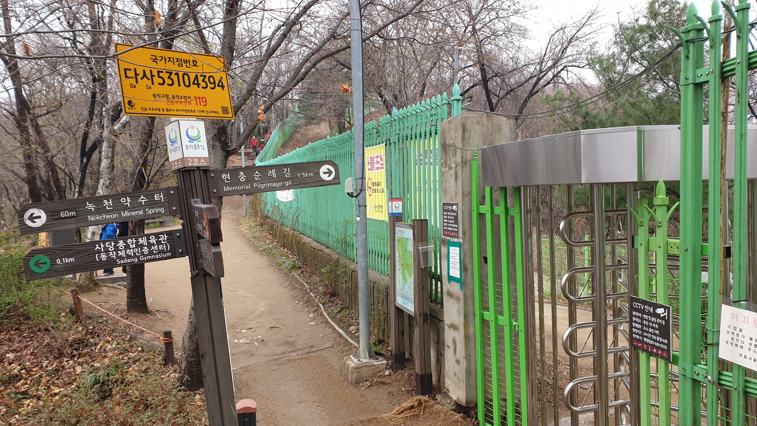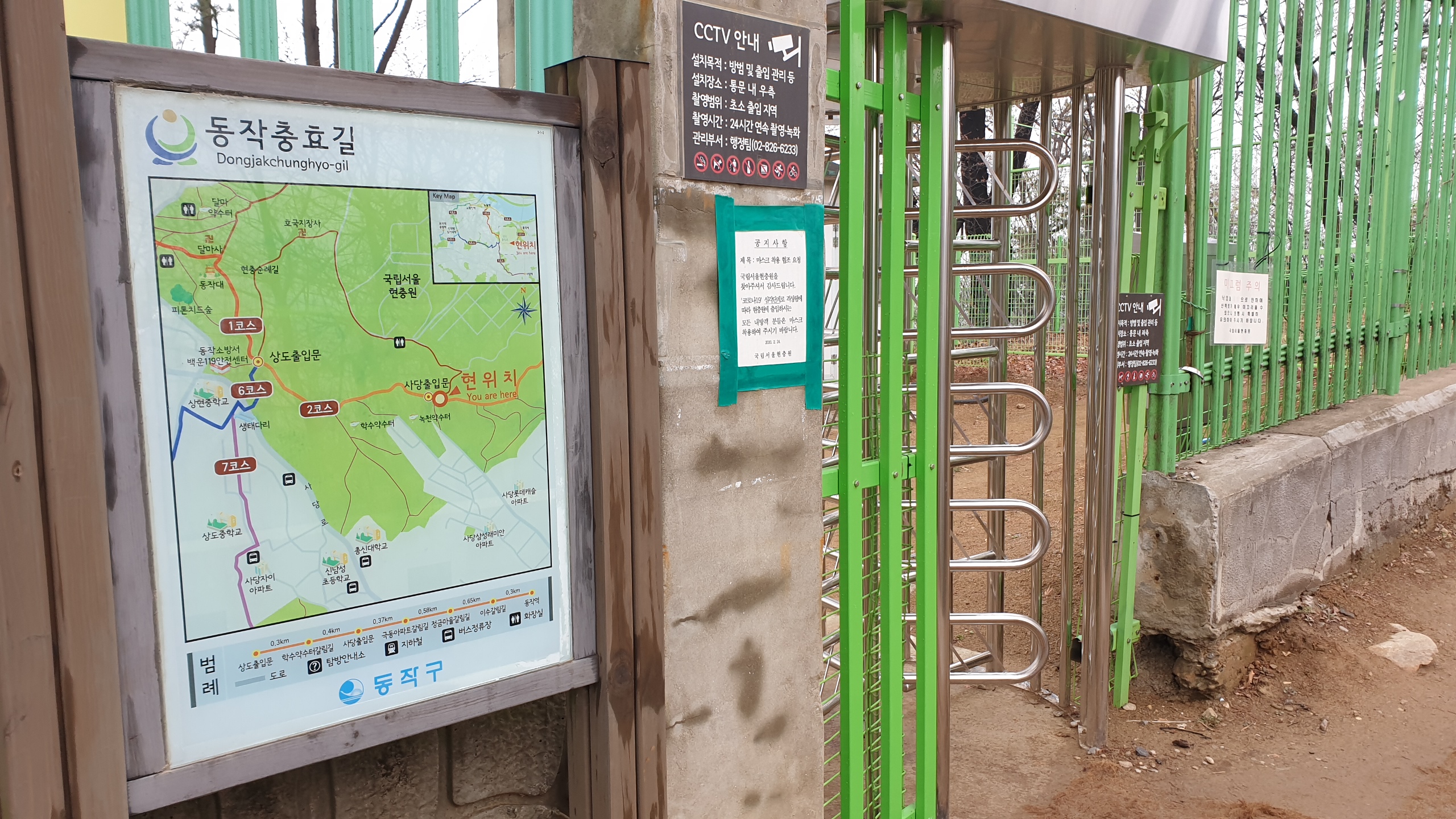↑ 현충원 상도출입문(1, 2, 6, 7 코스 갈림길)