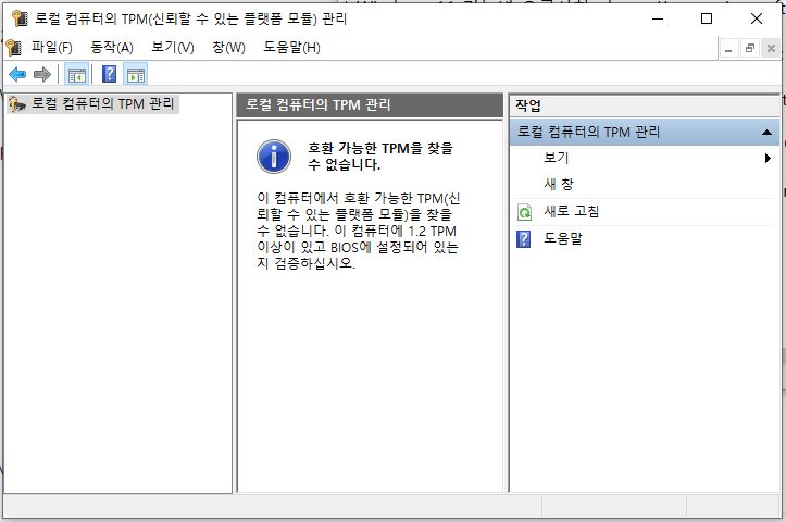 * Windows 11 TPM 2.0 확인 방법 : https://support.microsoft.com/ko-kr/windows/pc%EC%97%90%EC%84%9C-tpm-2-0-%EC%82%AC%EC%9A%A9-1fd5a332-360d-4f46-a1e7-ae6b0c90645c