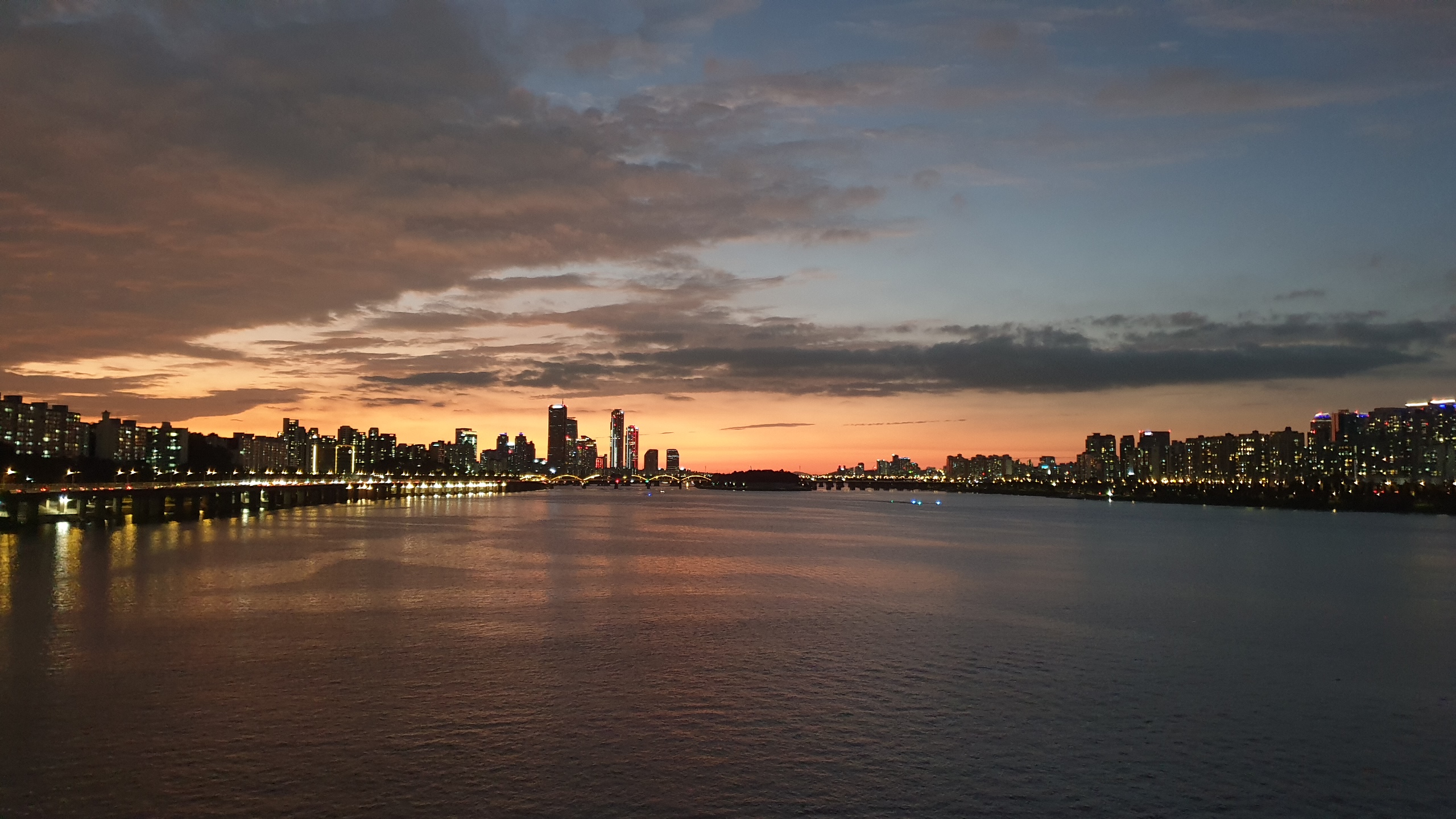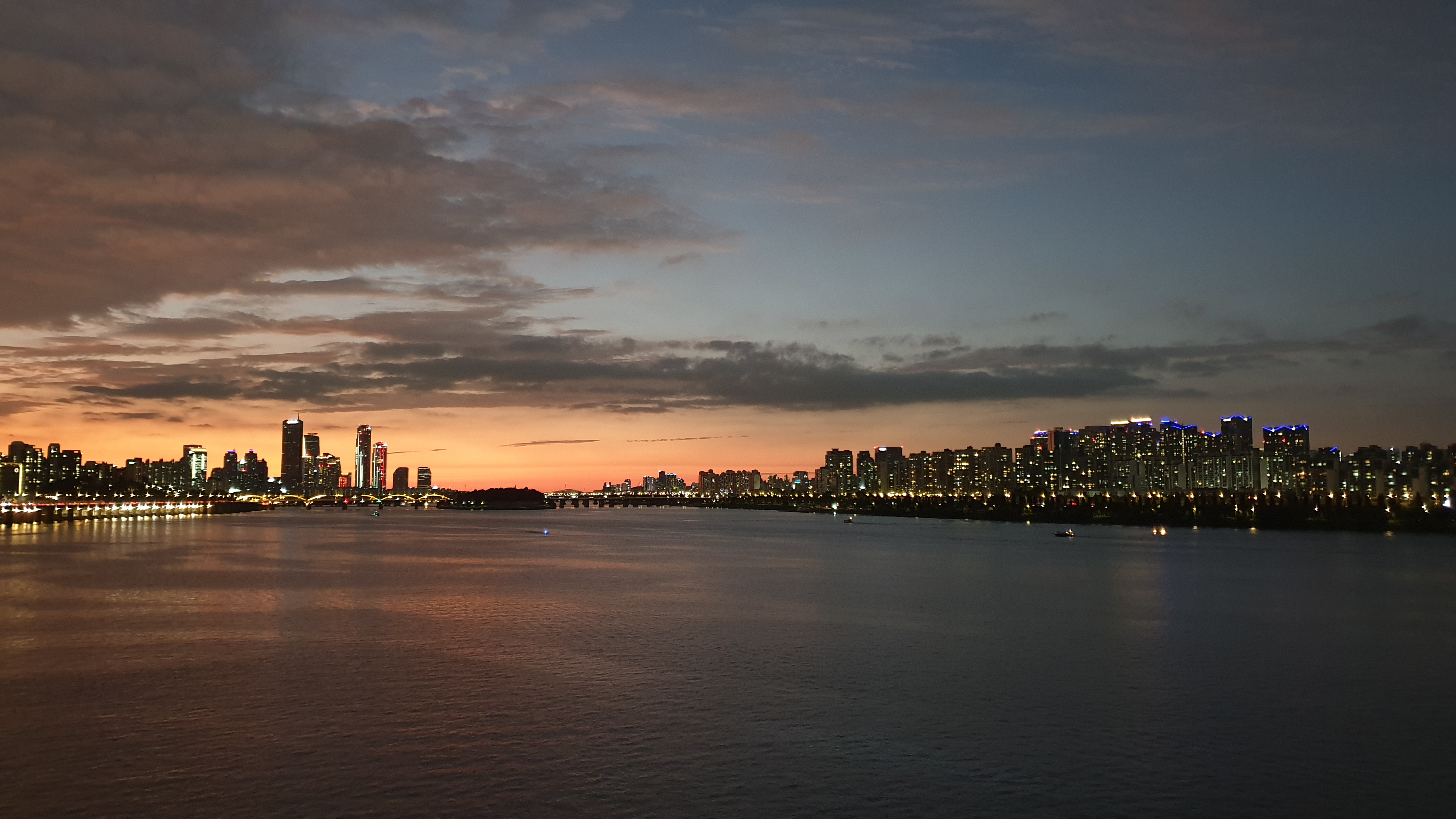 20240916 - 동작대교 남단에서 여의도 방면 석양 / 반포대교 / 세빛둥둥섬 스타벅스