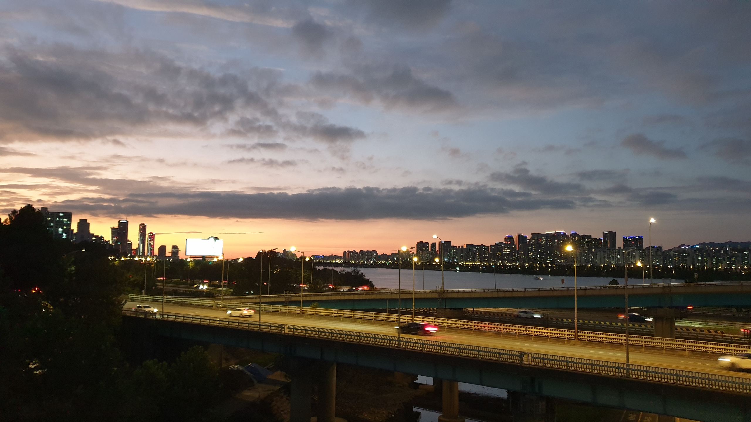 일몰 시간이 가까워지는데 약간의 구름이 있어서 걷기 운동 및 사진 촬영을 위해