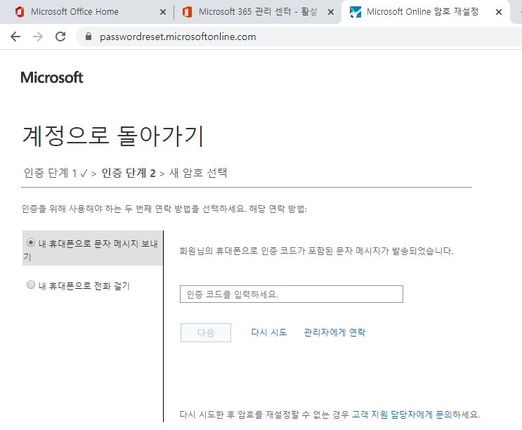 Microsoft Online 암호 재설정